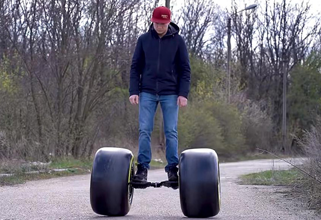 Najnoviji projekat koji je The Q osmislio je haverbord sa točkovima i gumama Formule 1 koje su prevelike za njega.