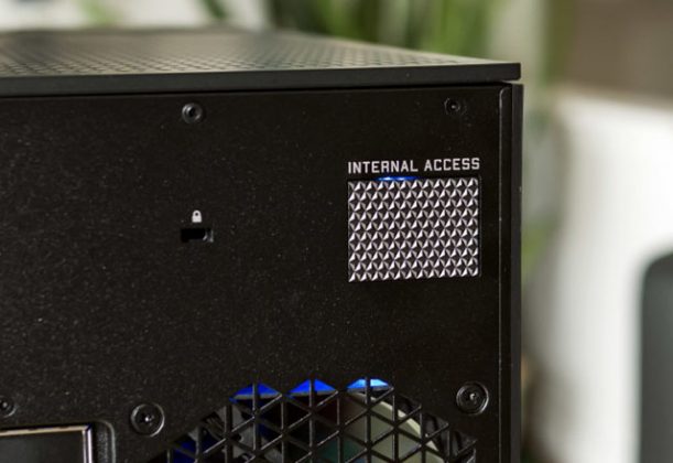 Međutim, HP je ipak uključio i neke detalje po kojima se ovo kućište izdvaja od standardnih PC kućišta koje možete kupiti u svakoj prodavnici kompjuterske opreme. Prednji deo je napravljen od kaljenog stakla i omogućava vam pogled na kuler unutra koji ima RGB osvetljenje, a duž stranice se nalazi šablon trouglastih ventilacionih otvora. Imaćete osećaj kao da ste u muzeju i gledate neku drevnu relikviju.