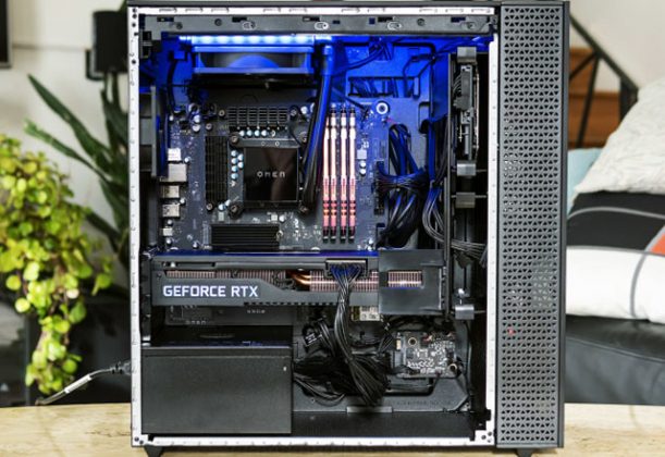 Štampana ploča je mat crna, što je lep detalj. Ploča omogućava dodavanje još jednog M.2 SSD-a kao i dva SATA hard diska u preostalim slotovima za memoriju. Unutrašnjim komponentama se pristupa bez ikakvih alata. Omen 30L ima pregršt prostora za kartice, čak i one ogromne poput Nvidia GeForce RTX 3090.