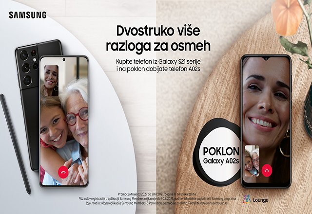 Kako bi leto dočekali spremni za nove avanture uz vrhunske uređaje, kompanija Samsung odlučila je da korisnike iznenadi posebnom ponudom koja traje do 20. juna ili do isteka zaliha. Kupovinom jednog od vrhunskih telefona iz Samsung Galaxy S21 serije, korisnicima je obezbeđen poklon u vidu novog Galaxy A02s pametnog telefona.