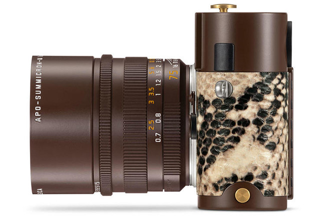 Kreiran za putovanja, ovaj fotoaparat, je presvučen lažnom veganskom kožom pitona sa hardverom u sepia braon boji i elementima od neobrađenog mesinga.