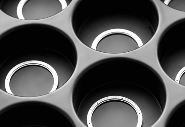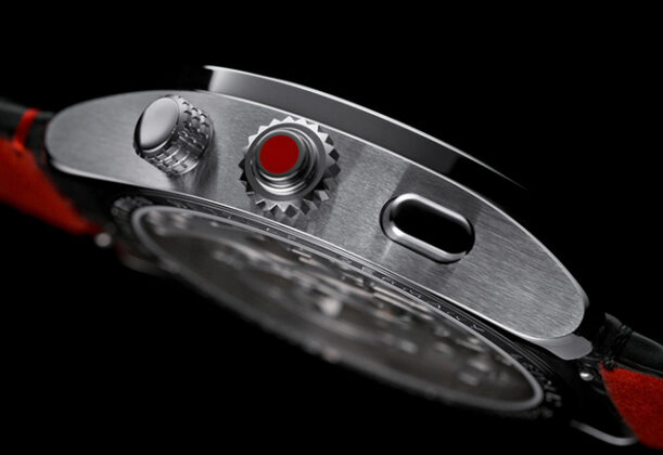 Leica ZM Watch Monochrome Edition ima minimalistički dizajn koji isključuje sve metalik nijanse i boje, a jedino je i dalje tu prepoznatljiva crvena tačka na krunici. Nenametljiv i sofisticiran, ovaj sat dolazi u kućištu prečnika 41 mm od nerđajućeg čelika presvučenim PVD premazom koji otkriva neverovatne detalje i dubine kada je obasjan svetlom. Brojčanik je izrađen od aluminijuma velike čvrstine i optočen je crnim rodijumom.