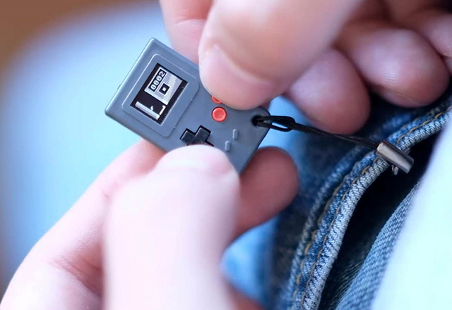Ova konzola veličine nokta dolazi u 4 boje (uključujući providnu verziju), kao i sa 5 unapred instaliranih igara, a korisnici mogu da ih dodaju još preko MicroUSB porta ispod (koji takođe služi za punjenje uređaja). Jako je smešno videti koliko je port velik u odnosu na sam uređaj, što navodi da se zapitate da li bi ovaj proizvod mogao biti još manji da su u kompaniji izbacili port i umesto njega koristili Bluetooth!