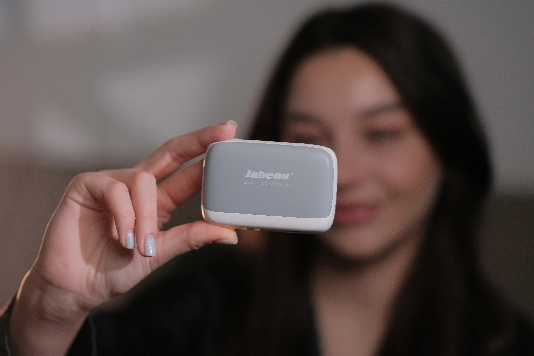 Lagan PEACE jastuk zvučnik od Jabees-a dizajniran je samo za vaše uši, koristeći tehnologiju provodljivosti kostiju da prenese samo vama. Debljine samo 13,7 mm, tanak je kao pametni telefon i otprilike polovične veličine, tako da leži ravno i nenametljivo između dušeka i jastuka, šaljući vibracioni zvuk onome čija glava počiva iznad njega.
