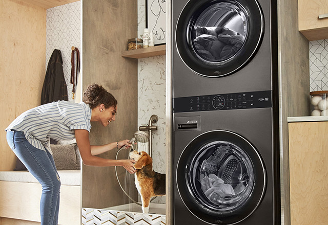 LG WashTower je otprilike 87 milimetara niži od prosečne visine drugih kombinovanih uređaja, što znatno olakšava prebacivanje odeće iz jednog u drugi deo.