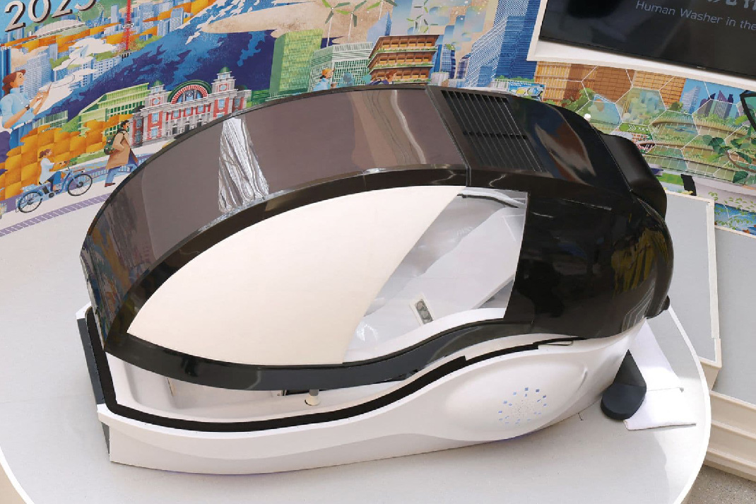 Na prvi pogled, mašina za pranje ljudi izgleda kao visokotehnološka kapsula za opuštanje. Korisnik se smesti u kapsulu, izabere režim pranja i zatvori poklopac. Unutra, ultrazvučni mehurići razgrađuju nečistoće na koži tako što prodiru u pore i uklanjaju sebum i mrtve ćelije kože.