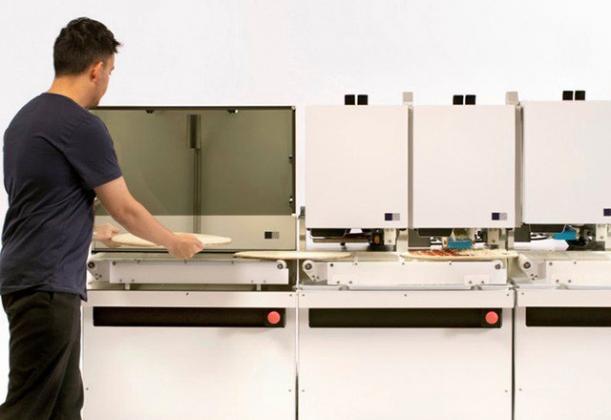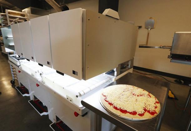 Ovaj robot, koji liči na proizvodnu liniju, može da izbaci 300 pica prečnika 30 cm u sat vremena.