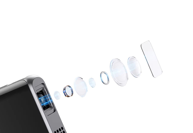 Pico T1 ima dizajn koji podseća na iPod, onako pravougaoni sa točkićem osetljivim na dodir koji se nalazi u dnu i služi za sve komande. Postavite projektor na ravnu površinu ili ga montirajte na njegov tronožac, uključite ga i spremni ste da počnete da gledate sadržaje na slici dijagonale 70 inča. Pico T1 podržava i bežično i žičano povezivanje, omogućavajući vam da ga povežete na smartfon/tablet preko USB-C porta ili preko Bluetootha. HDMI port vam takođe omogućava da povežete druge uređaje, poput gejming konzola, laptopova ili kamera i projektujete slike i video sadržaje direktno na zid uz pomoć projektora Pico T1.
