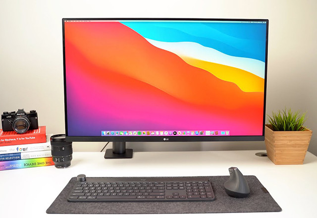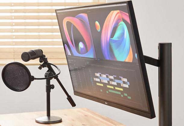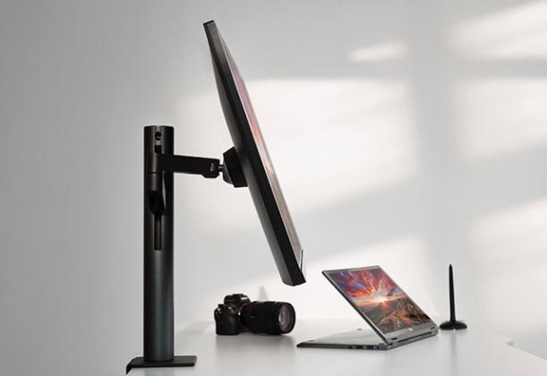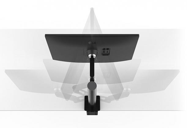 LG je monitor opremio posebnim ležištem u vidu zglobnog C-stuba, koji omogućava kretanje u svim pravcima, a montira se na samu ivicu stola, zbog čega ne zauzima nikakav prostor na samom stolu, niti zahteva prisustvo velike baze, kakva bi inače bila tipična za 32-inčni monitor.