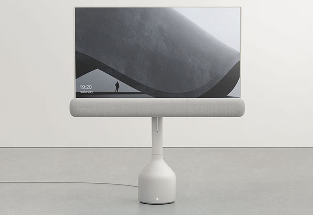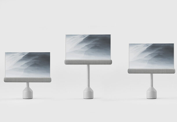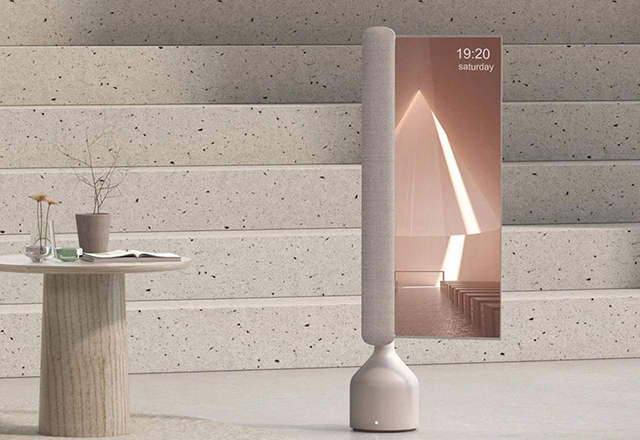 Dok stoji na stabilnom postolju, ovaj OLED ekran može da se podešava po visini i naginje po različitim uglovima. Ta fleksibilnost u kombinaciji sa mogućnošću rolanja ovog OLED-a omogućava vam da dobijete različite konfiguracije i formate ekrana. Kada se displej urola u vertikalnu poziciju, on se pretvara u predmet nalik totemu koji može da se stopi sa okolinom i služi kao zvučnik koji zauzima vrlo malo prostora na podu.