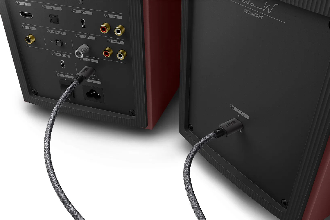 Povezuje se sa KEF Connect aplikacijom za podešavanje EQ-a i kontrolu reprodukcije, ali imajte na umu da ovo nije potpuno bežični sistem. Dva zvučnika moraju biti spojena kablom (dužine oko 3 metra u paketu), mada KEF nudi i duže opcije.