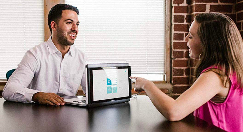 DUEX Pro možete i da nakrivite za 180° od sebe, što je savršeno za prezentacije 1 na 1 ili za konferencije.