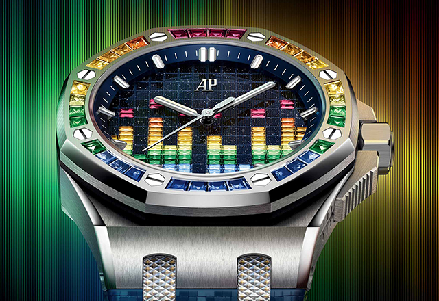 Audemars Piguet predstavlja novi Royal Oak koji slavi muziku uz posebni šareni brojčanik sa Tapisserie završnom obradom koji je dizajniran da imitira šablon VU metra. Pet izdanja će biti dostupno: dva titanijumska modela sa kućištima od 37 i 43 mm, dva modela od belog zlata sa kućištima od 37 i 43 mm i dragim kamenjem na brojčaniku i koroni, i jedan model sa kućištem prečnika 43 mm od crne keramike.