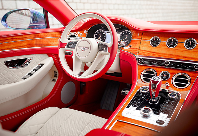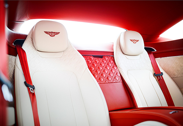 Raskošna kabina se slaže sa vlasnikovim automobilom Continental GT V8 i krasi je crvena Hotspur koža u kombinaciji sa kontrastnim bež tekstilom i prepoznatljivim dijamantskim Bentley šavovima.