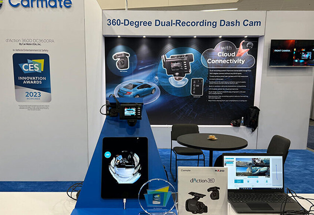 Auto-kamera DC3600RA kompanije Car Mate USA može da pravi snimke visoke rezolucije i to ispred, iza i 360 stepeni oko auta sa samo dve kamere. Iako ovaj proizvod deluje kao obična kamera koja snima pod uglom od 360 stepeni sa zadnjom kamerom, DC3600RA ima jedinstvenu „Dual-Recording“ tehnologiju za obradu slike u objektivu od 360 stepeni. Ova kamera automatski izdvaja snimak ispred auta iz snimka od 360 stepeni. Kao rezultat toga, oba snimka se čuvaju u najboljoj rezoluciji koja odgovara svakom od snimaka.