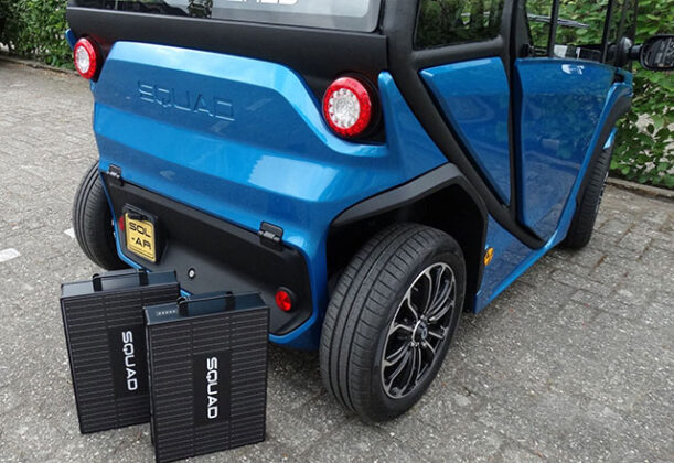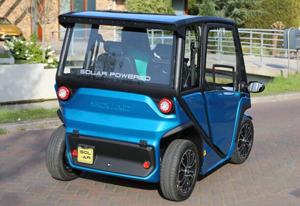 SQUAD ima bateriju sa kojom može da pređe do 100 kilometara sa jednim punjenjem. Takođe ima i solarni panel na krovu koji puni bateriju dok se auto kreće po drumu.