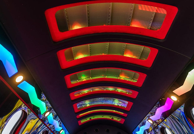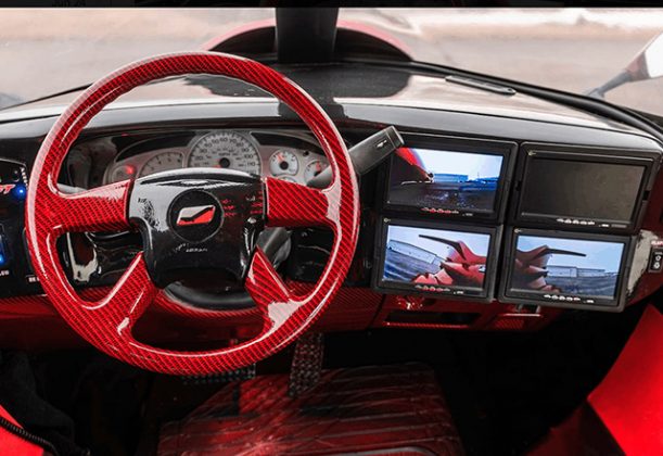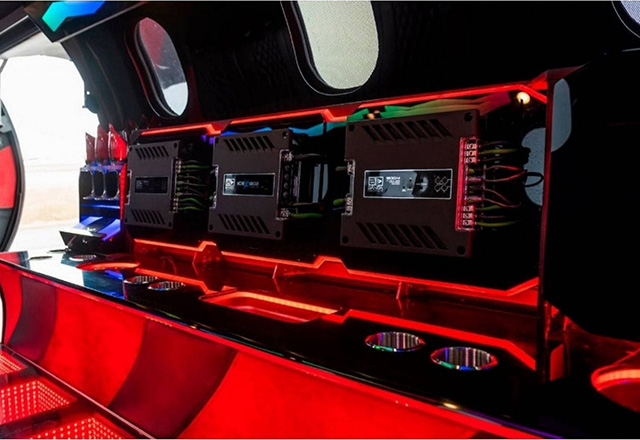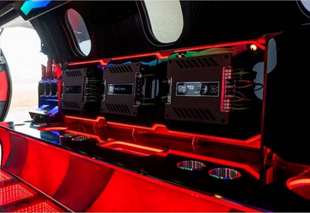 Ostali detalji vredni pažnje uključuju hidraulične kočnice, konturisano sedište sa sigurnosnim pojasevima za vozača, 18 kožnih sedišta sa dijamantskim štepom, infinity pod, šank za osveženje, gomila držača za čaše, crveni elementi sa teksturom ugljeničnih vlakana, četiri ekrana za spoljne kamere i zadivljujuća količina efekata za koje je zadužen zvučno-vizuelni sistem kompanije Showtime Audio snage 17.000 vati koji uključuje plazma TV od 42 inča, nekoliko svetlosnih panela i mnoštvo zvučnika, kako spolja tako i unutra.