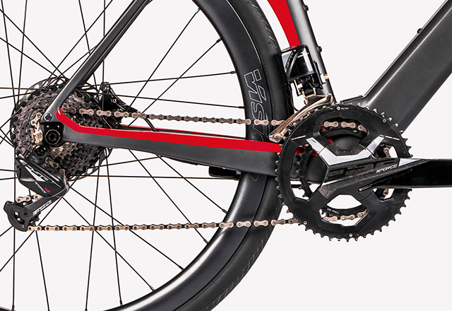 Zadnji trougao je lateralno rigidan, upravo zbog odabira pozicije štitnika, i omogućava bolji prenos snage do točkova, kao i bolji odziv bicikla. Donja cev, cev sedišta i slajderi viljuške su ekspertski profilisani, a šema bojenja sastoji se iz sive i crne kao osnovne boje sa detaljima u Ducati crvenoj boji.