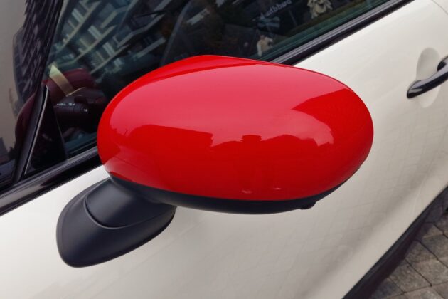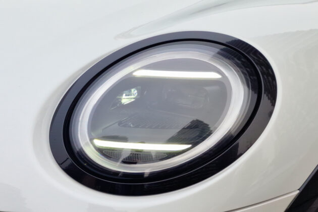 Sve LED rasvete nalaze se spolja, zajedno sa sportskim karoserijskim kompletom, dok su točkovi od 17 inča napravljeni do 70 procenata od recikliranog aluminijuma. Tipično skupi opcioni panoramski krov je deo paketa za sve nivoe opreme Cooper S. Šiber je odlično postavljen. Vetar ne smeta ni pri bržoj vožnji, a ni buka od strujanja vazduha.