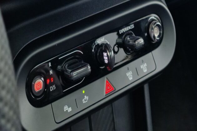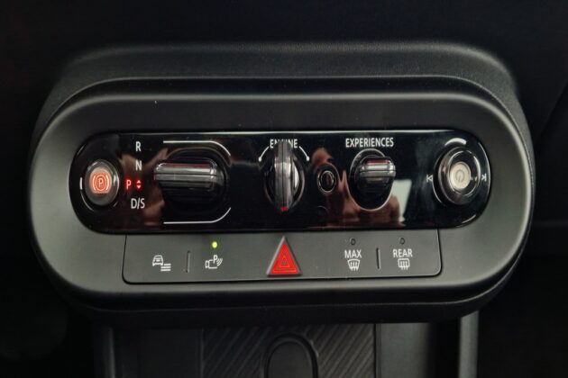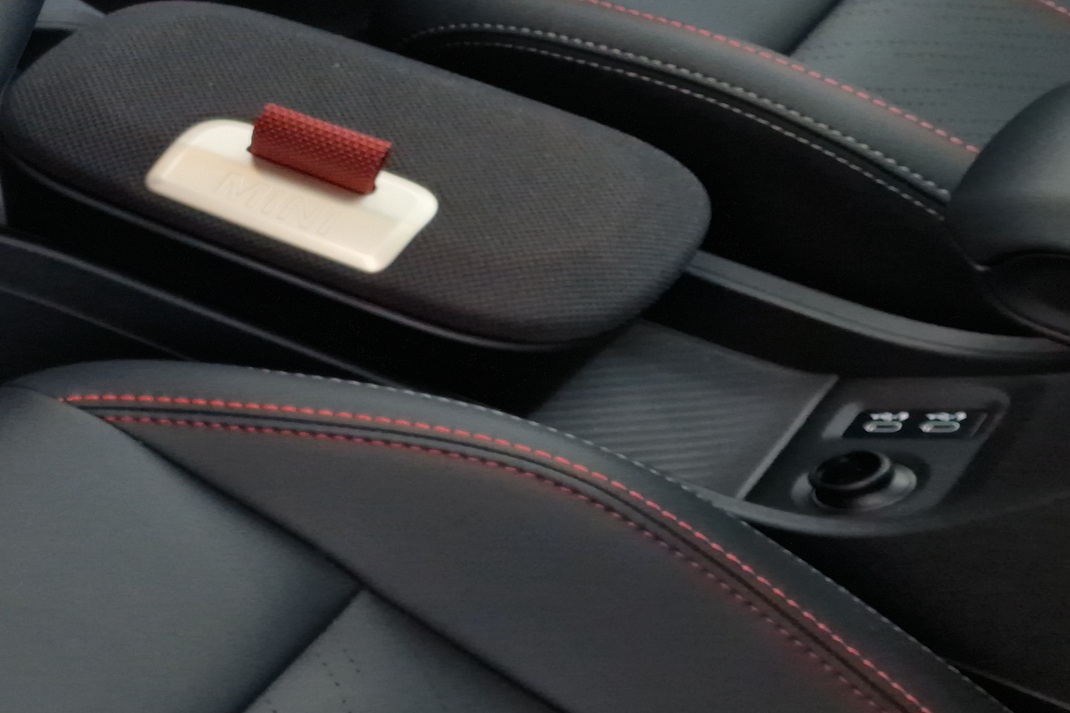 Postoje USB-C priključci za napajanje, zajedno sa 12-voltnim priključkom u prednjem redu, DAB radio,  bežični ulazak i startovanje motora. Umesto dugmeta, paljenje MINI-ja zahteva okretanje fiksiranog „ključa“ među komandama ispod ekrana. Društvo mu prave automatski menjač, parkirna kočnica, prekidač za izbor moda (po Mini jeziku se zovu Iskustva), i brojna MINI „Iskustva“ omogućavaju promenu grafike i stila zajedno sa nekoliko parametara vožnje vozila. Skroz na desnom kraju, tik pored suvozača, je Volume točkić!