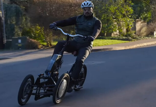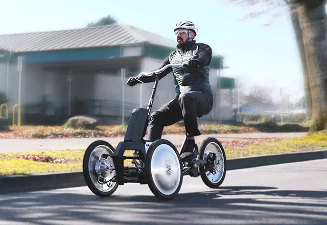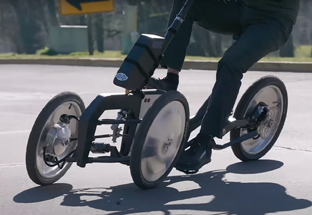 Gledajte na ovaj model kao mini Arcimoto FUV (Fun Utility Vehicle), osim što se naginje u krivinama. I ima pedale. I generator za električnu vožnju. I pogon na svim točkovima. I zauzima manje-više jednako prostora kao i e-bicikli.