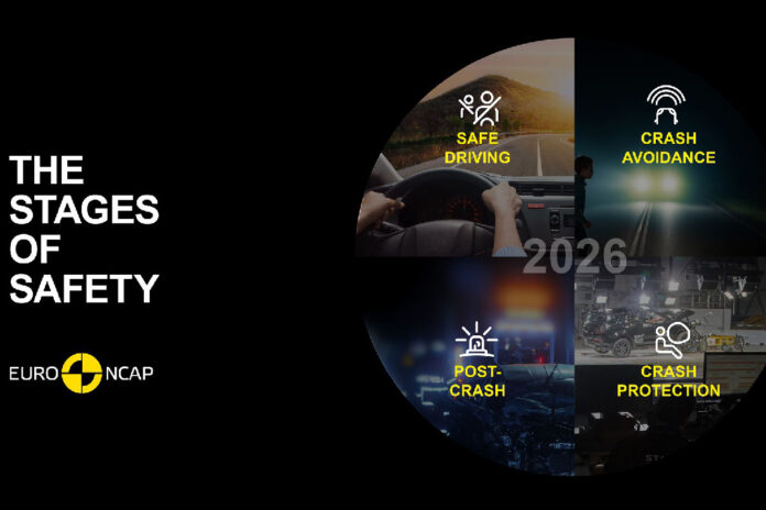 Od 2026. godine, Euro NCAP procene biće strukturisane oko četiri faze bezbednosti, pri čemu se svaka ocenjuje sa maksimalno 100 poena i izražava u procentima. Minimalni pragovi i dalje važe za svaku fazu i utiču na ukupnu ocenu u zvezdicama.
