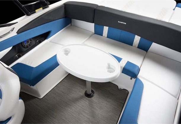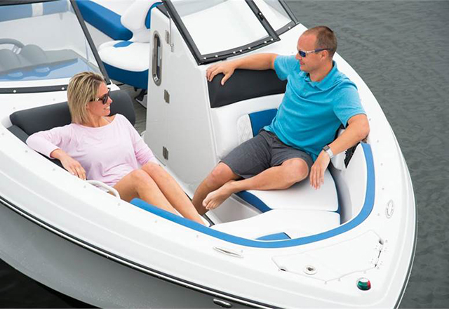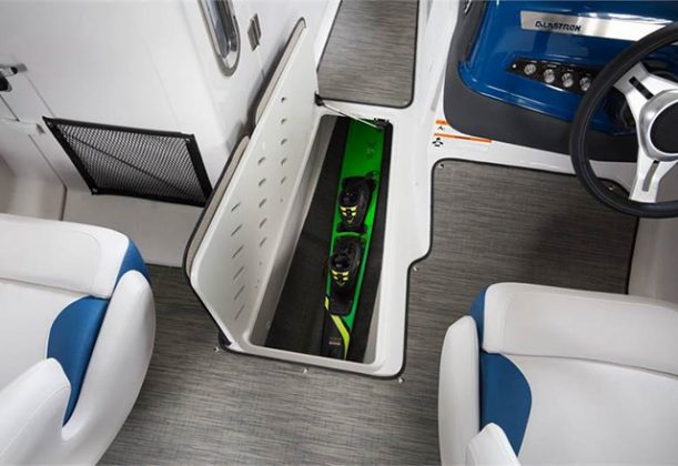 U brodogradilištu Glastron znaju da ljudi vole da bace sidro i provedu većinu svog vremena jednostavno odmarajući, uz sunčanje i druženje na krmi broda. Kada se rasklopi, ležaljka se pretvara u lepu horizontalnu površinu za sunčanje. A kada podignete jedan od jastuka, on se pretvara u naslon i formira klupu koja gleda na vodu iza broda odakle možete da posmatrate zalazak sunca ili decu kako se igraju u vodi.