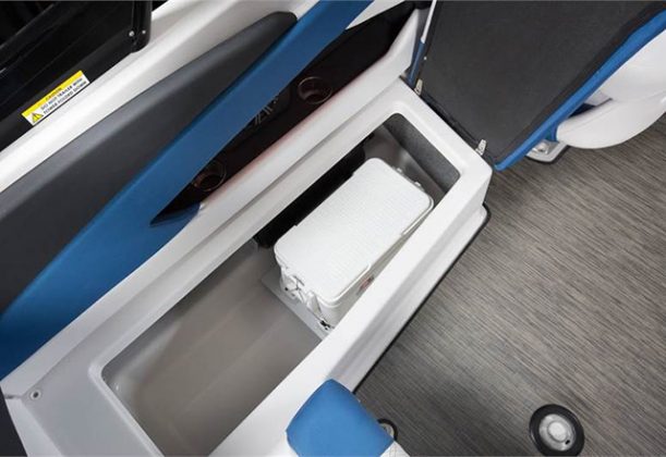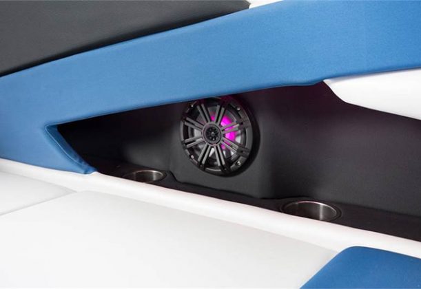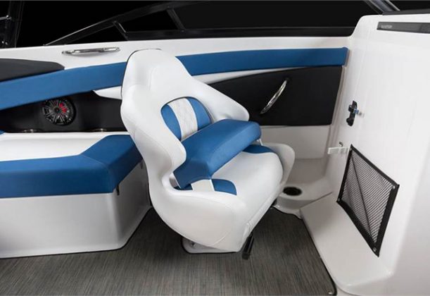 Glastron vam omogućava da birate između tri paketa opreme. GTS je najsportskiji od ta tri paketa i uključuje grafike i završnu obradu sa gelcoat premazom, kao i posebne tepihe sa ispisanim logoom brenda i tapacirung u crvenoj, beloj i crnoj boji. Iako crna možda nije najbolja boja za presvlake – s obzirom na njeno svojstvo zadržavanja toplote – u brodogradilištu Glastron koriste Aquaflex vinil, koji ima teksturu tkanine i bolje rasipa toplotu od tradicionalnog vinila, tako da ostaje ugodan čak i kad je izložen direktnim sunčevim zracima.