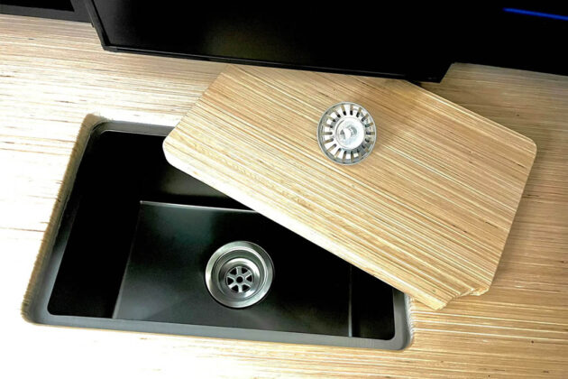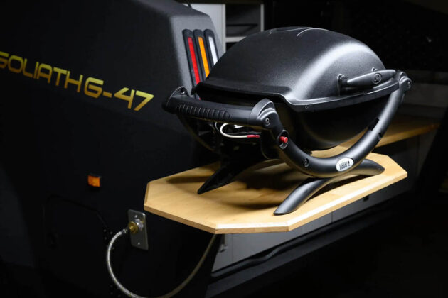 Goliath pruža radnu površinu preko cele širine prikolice uz pomoć poklopca za sudoperu, čime obezbeđuje radni prostor od 160 x 60 cm. Ako to nije dovoljno, sklopiva radna ploča služi kao sekundarni pult i postolje za prenosivi Weber roštilj. Iza pulta se nalazi uspravni frižider/zamrzivač od 65 litara, prilagođen stalak za vino, prilagođen stalak za začine i 300 litara prostora u fiokama i ormarićima. Indukciona ploča za kuvanje ima dve ringle, a sudopera je povezana sa dizel grejačem vode i rezervoarom od 170 litara za svežu vodu.