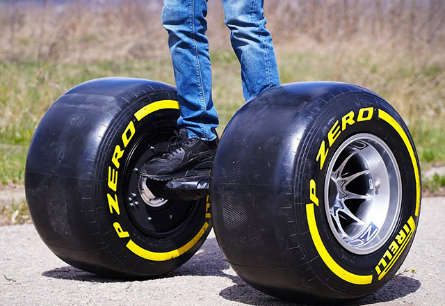 Najnoviji projekat koji je The Q osmislio je haverbord sa točkovima i gumama Formule 1 koje su prevelike za njega.