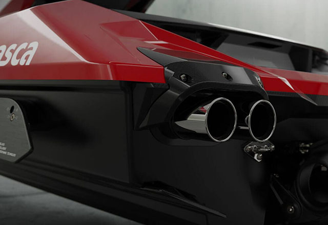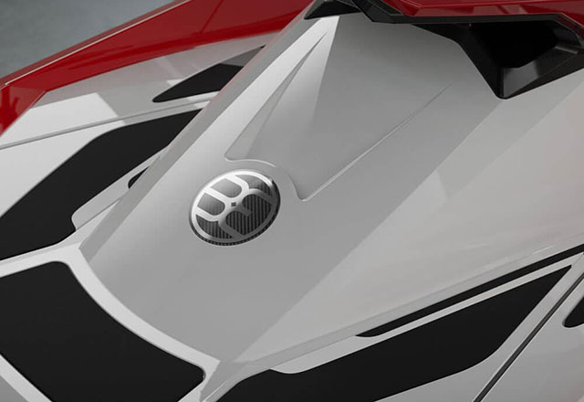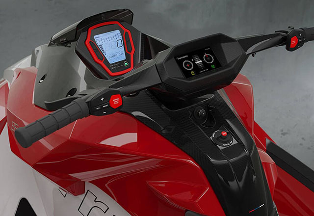 Ova vodena trkalica ima elegantnu siluetu inspirisanu italijanskim motociklima kao i aerodinamične detalje od ugljeničnih vlakana, poput onih na hiperautomobilima.