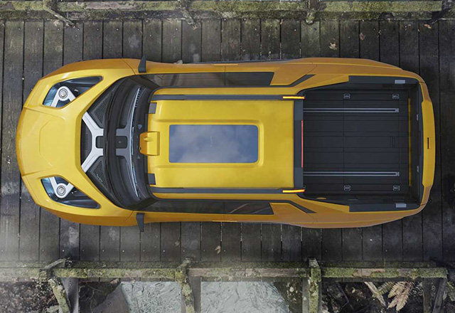 Dva otvora na haubi omogućavaju pogled na amortizere vozila, a vrata dolaze sa dva seta prozora – jednim gore i fiksiranim prozorima dole kod nogu putnika koja propuštaju dodatnu svetlost unutra.