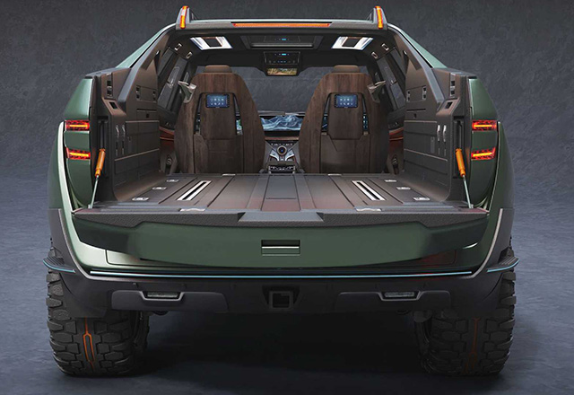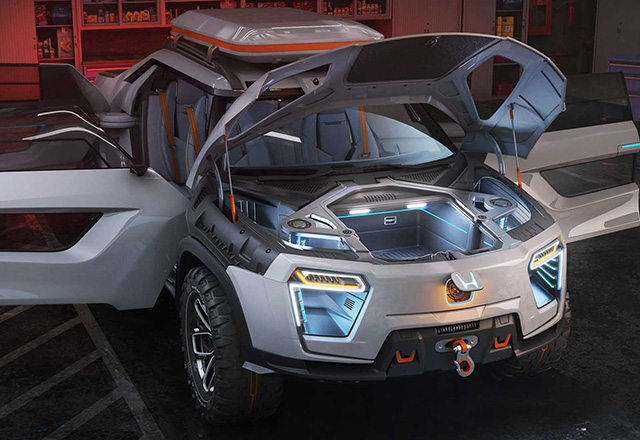 Dizajniran da savlada praktično svaku prepreku pred koju ga postavite, ovaj električni automobil ima vitlo napred, kao i prednji prtljažnik, „suicide“ vrata koja omogućavaju pristup prostranom enterijeru i produživi tovarni deo pozadi koji je opremljen alatkama i priborom za prvu pomoć.