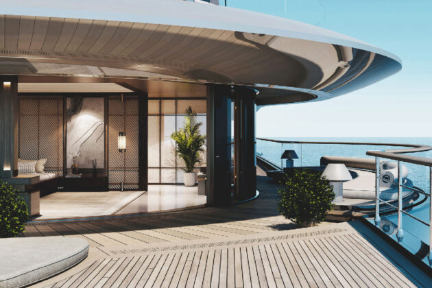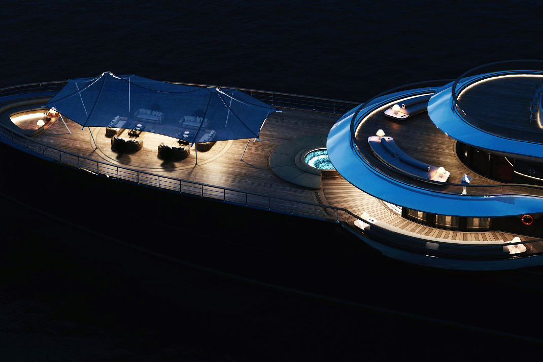 Ixian nudi više terasa i lounge zona raspoređenih duž paluba, uključujući dva đakuzija – jedan na pramcu, drugi na krmi. Na pramcu je i helidrom, koji se po potrebi pretvara u otvoreni lounge, jer kakva je to super jahta bez helidroma.