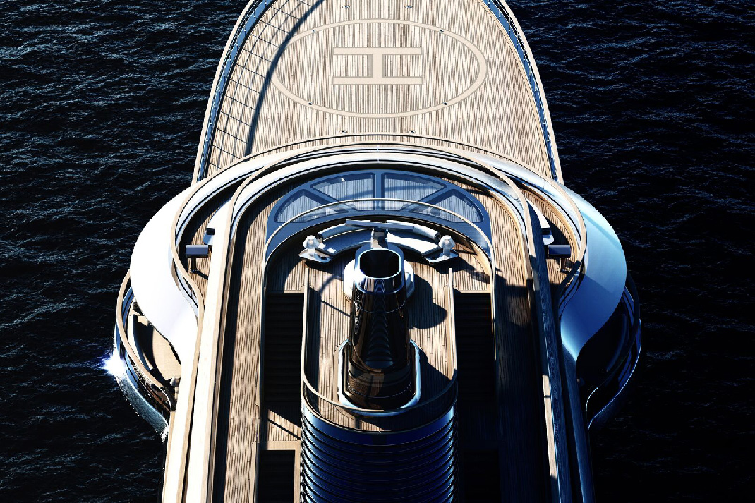Španski dizajner Aberdoni, nekada deo tima Alberto Mancini Yacht Design, predstavio je koncept gigajahte Ixian, duge 328 stopa (oko 100 metara), kao omaž zlatnom dobu jahtinga, ali sa savremenim, gotovo futurističkim zaokretom.