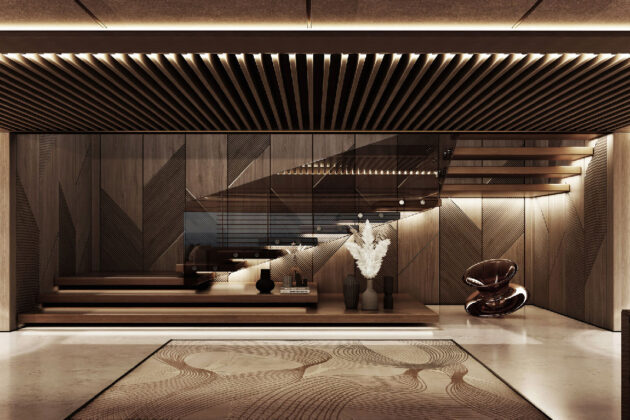 Unutrašnjost prati filozofiju „quiet luxury“ odnosno palete toplih smeđih i bež tonova, a čiste linije i minimalistički nameštaj stvaraju miran, prijatan prostor. Umesto hladne ekstravagancije, Ixian odiše udobnim luksuzom, uz zidove od furniranog drveta, kamene podove i bogate teksture.