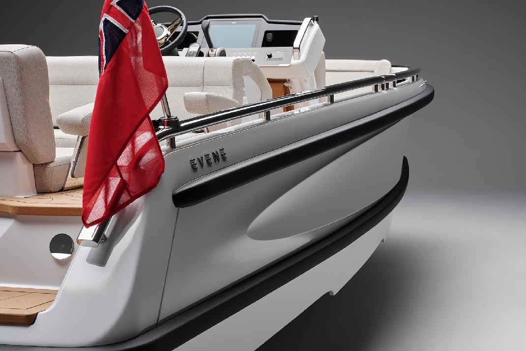 Novi Evene su ocenjeni da prenose do 13 osoba zahvaljujući stabilnom dizajnu trupa i pametnom uređenju kokpita. Svaka Evene može biti opremljena po preferencijama vlasnika koristeći konfigurator na veb-sajtu. Izbori uključuju izglede sedenja i širok niz opcionalne opreme. Postoji prilika da prilagodite ime i boje kako bi odgovarali matičnom plovilu.