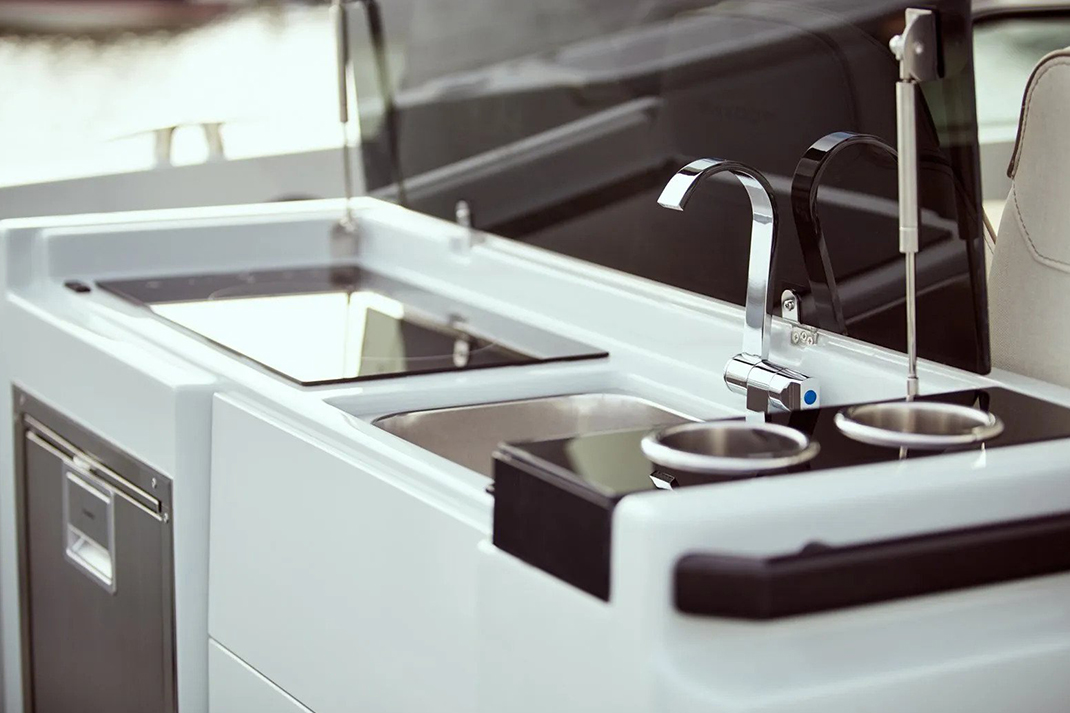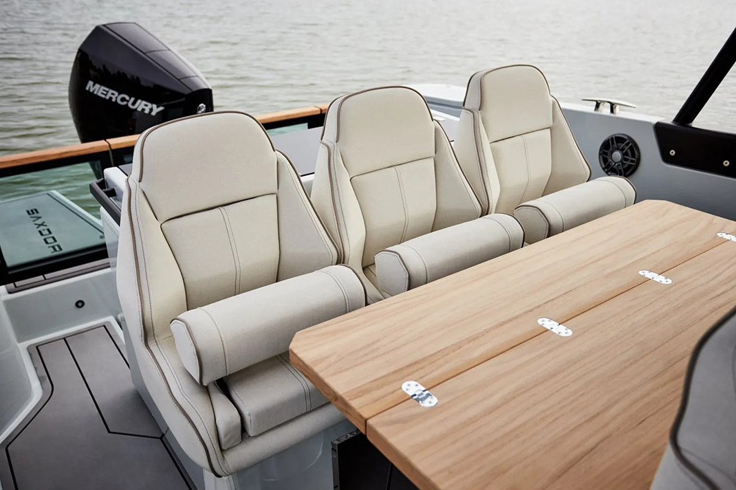 Simetrični kokpit doprinosi balansu broda, širina prolaza sa leve strane omogućava ljudima da se samouvereno kreću po brodu, a prostor za ručavanje na krmi može da se pretvori u prostor za sunčanje.