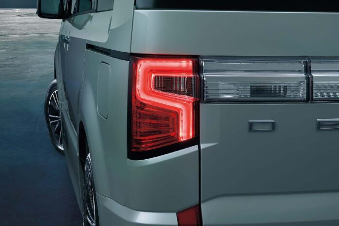 Mitsubishi nastavlja istu priču i pozadi, dodajući sličan dizajn zadnjeg branika i veliko DELICA obeležje koje se proteže sredinom vrata prtljažnika. Između prednjeg i zadnjeg kraja, blago ispupčeni rubovi blatobrana u kontrastu sa bojom karoserije dodatno ističu dugogodišnje 4×4 sposobnosti Delice, nasleđene od kod nas jako popularnog Pajera, legendarnog pobednika Dakar relija.