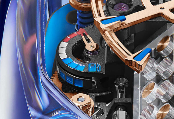Kućište sata napravljeno u potpunosti od safirnog stakla je jedno od najvećih dostignuća u savremenoj visokoj horologiji. Takođe je vrlo izazovno za napraviti. Dodatni izazov je bio dati kućištu plavu boju. Safirno staklo je ručno rađeno i napravljeno od praška aluminijum-oksida zagrejanog na oko 2.200 stepeni celzijusa. Potrebno je oko 15 dana da safir naraste do veličine otprilike kao konzerva koka-kole, a potom se jedan deo odseče i mašinski obrađuje nekih 80 sati uz različite tehnike ručnog poliranja zasnovane na različitim oblicima i teksturama kućišta.
