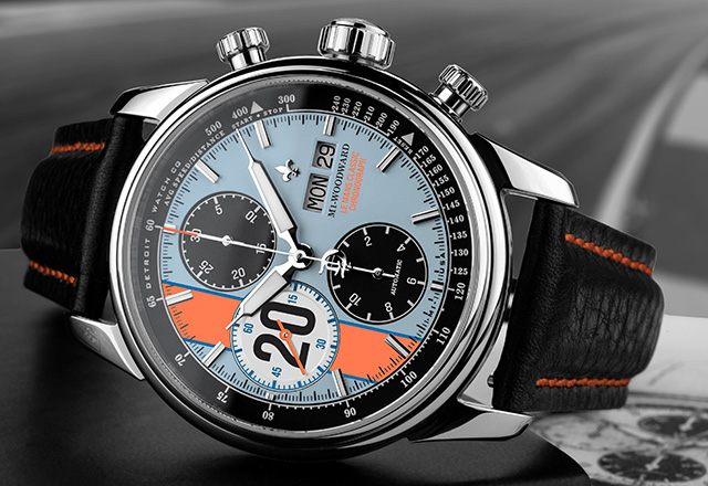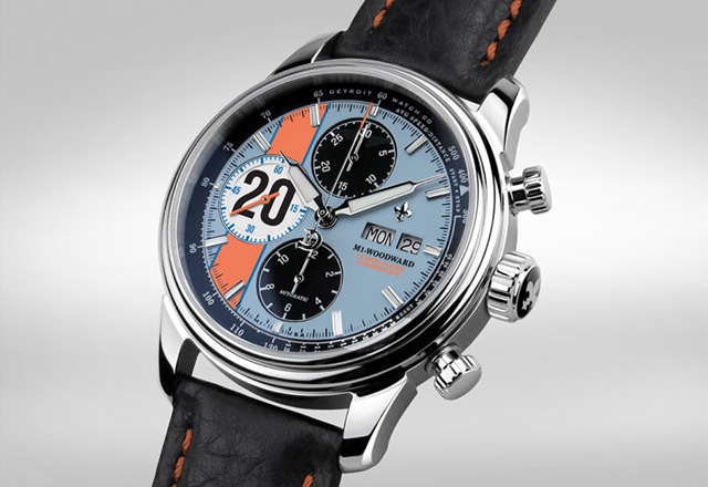 Detroit Watch koristi svoj hronograf M1-Woodward Avenue kao osnovu za novu kolekciju koju čine čelični modeli u dve veličine i sa tri brojčanika sa šemom živahnih boja trkačkog automobila Gulf iz 1960-ih. To znači da ćete videti brojčanik u klasičnoj svetlo-plavoj boji presečen narandžastom štraftom.