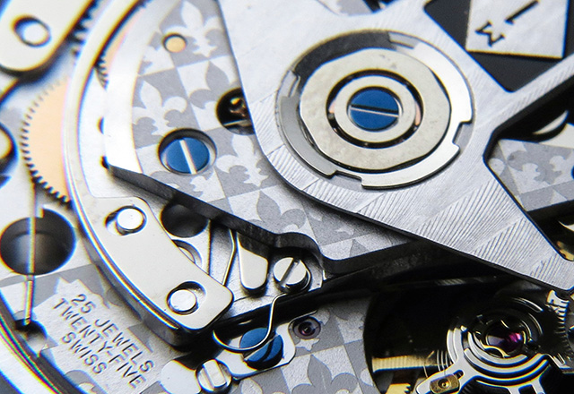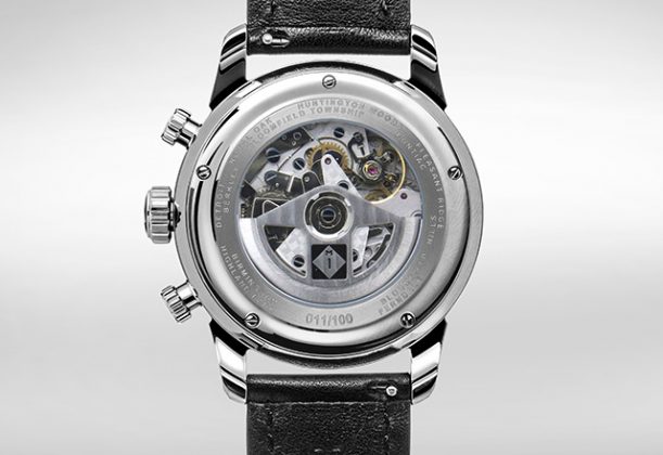 Poklopac kućišta modela 42mm M1-Woodward LeMans Classic Chronograph Exhibition omogućava pogled na mehanizam ETA Valjoux 7750 sa posebnim dekorativnim elementima.