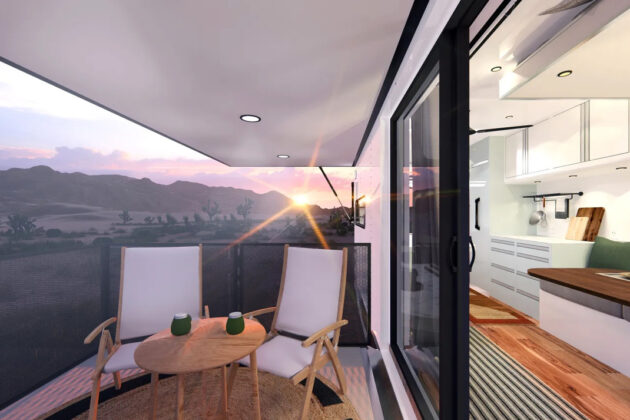 GT39 ima sklopivi trem koji je dovoljno prostran da se koristi kao spoljni prostor za ručavanje ili spoljna kuhinja na kampu. Sklopivi trem je pokriven sklopivim tendom. Zanimljiv element ove „jahte za put“ je opcija instaliranja od 2.2 do 5 kilovata solarnih panela na krovu. Prostirući se celom dužinom i širinom LV modela, solarne ćelije mogu se proširi na tende za dodatno pokrivanje. Da bi se poboljšala samoodrživa sposobnost, solarni sistem prikolice je podržan hibridnim rezervnim generatorom napajanja i dopunjen baterijskim paketom od 72 kWh.