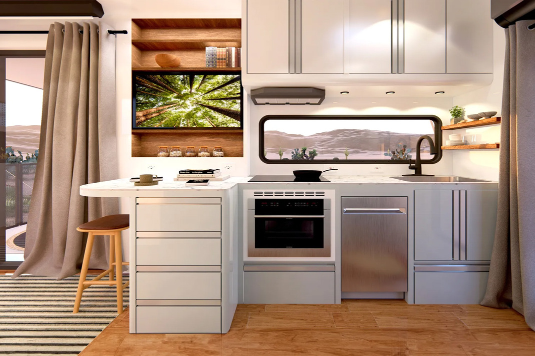 Električne „kamp“ prikolice kompanije Living Vehicle, butik proizvođača putničkih prikolica iz Santa Barbare, CA – koji godinama povezuje luksuz i održivost, bile su bliski konkurenti Airstream modelima. Ovi modeli su dizajnirani da prodaju način života koji je u ideologiji Living Vehicle-a „održiv, vanmrežan i luksuzan.“ Kompanija je ušla u novu kategoriju sa GT serijom. Ovi modeli: vodeći GT39 i manji GT32, kombinuju odvažnost van asfalta sa luksuzom koji se može uporediti sa osećajem jahte na kopnu.