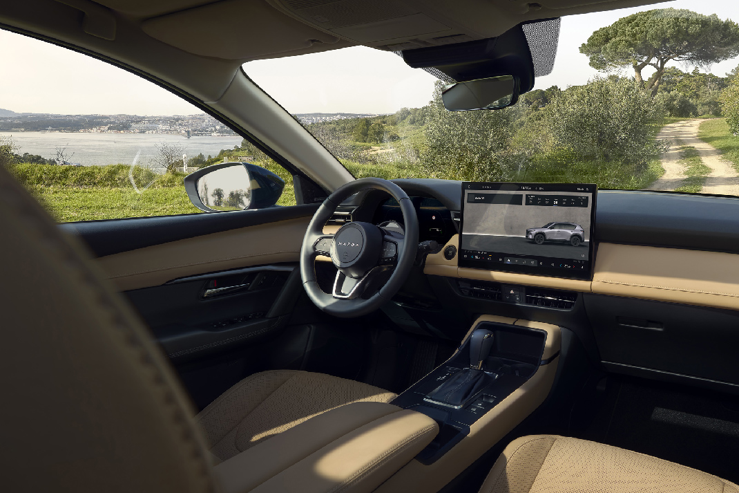 Novo HMI okruženje razvijeno je sa jasnim ciljem da vozač u svakom trenutku ostane potpuno fokusiran na put, uz minimalno vizuelno, manuelno i kognitivno opterećenje. U skladu sa Mazdinom bezbednosnom filozofijom, akcenat je stavljen na jednostavnost i intuitivnost korišćenja. Centralno mesto u kabini zauzima novi integrisani ekran osetljiv na dodir u horizontalno orijentisanom rasporedu, dostupan u veličinama od 12.9 ili 15.6 inča, sa prilagodljivim interfejsom nalik pametnim telefonima.