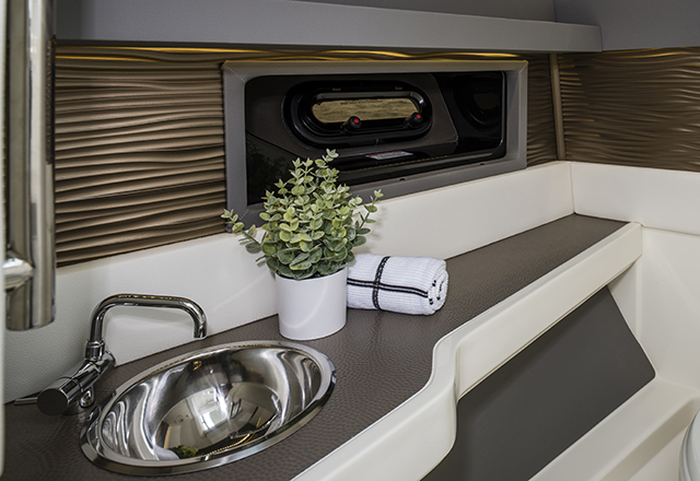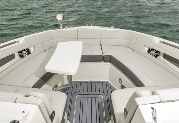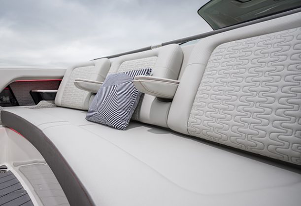 Sa dva Mercury Racing 400R vanbrodska motora i upravljanjem preko džojstika, ovaj model koji ima sertifikat za ispunjene standarde kvaliteta na jahtama napravljen je za zajedničke avanture i nova iskustva jer omogućava udobno sedenje za 17 putnika uz kokpit koji se proširuje, šank i veliku ležaljku za sunčanje.