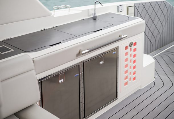 Raspored koji je najbolji u klasi donosi mesto za sedenje za 22 putnika, obilje prostora za odlaganje stvari i vrhunske prateće sadržaje kao što su prelepe ležaljke za sunčanje i preklopna krmena platforma.