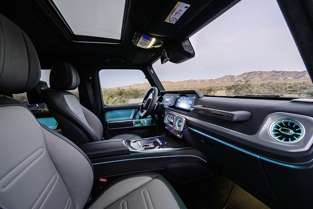 Potpuno novi Mercedes-Benz G 580 sa EQ tehnologijom je standardno opremljen MBUX infotejnment sistemom (Mercedes-Benz User Experience), multifunkcionalnim upravljačem presvučenim napa kožom i ambijentalnim osvetljenjem. Opcioni dodaci uključuju KEYLESS-GO, držače za čaše sa kontrolom temperature, Burmester® 3D sistem surround zvuka i „providnu haubu“. Redizajnirana kontrolna jedinica za terensku vožnju i novi OFFROAD COCKPIT dostupni su kao opcije za poboljšanje off-road iskustva dodatnim digitalnim funkcijama. EDITION ONE, ograničeno izdanje modela sa proširenom paletom standardnih karakteristika i ekskluzivnih elemenata dizajna, dostupno je pri lansiranju.