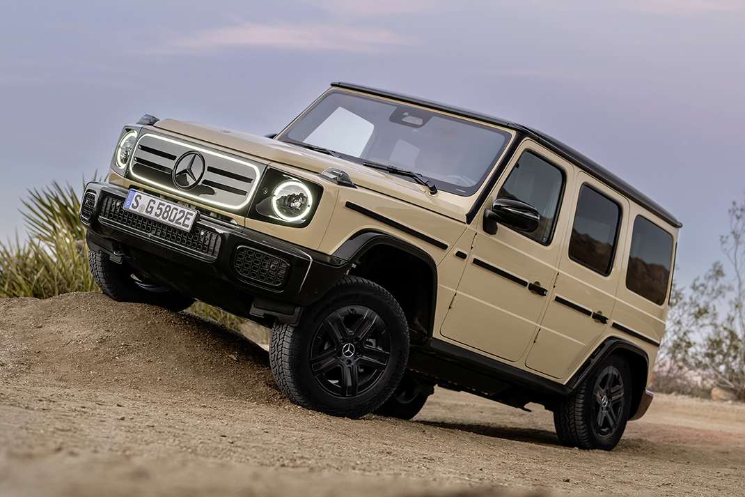 Sa potpuno novim Mercedes-Benz G 580 sa EQ tehnologijom (kombinovana potrošnja energije: 30,3-27,7 kWh/100 km | kombinovana emisija CO₂: 0 g/km | CO₂ klasa: A), brend sa trokrakom zvezdom predstavlja prvu potpuno električnu varijantu svoje off-road ikone. Ona simbolizuje spoj tradicije i napretka kao niko drugi. Potpuno nova električna G-Klasa ostaje verna karakteru modela, zadržavajući svoju „ćoškastu“ siluetu i uključujući sve prepoznatljive elemente. Kao i kod varijanti sa konvencionalnim pogonom, šasija vozila je izrađena na lestvičastom ramu. Razvojni tim je ovo rešenje modifikovao i ojačao kako bi integrisao električni pogon. Zadržana je i kombinacija nezavisnog prednjeg oslanjanja sa dvostrukim polugama i novorazvijene krute zadnje osovine. Visokonaponska litijum-jonska baterija integrisana je u okvir lestvičastog rama i obezbeđuje nizak centar gravitacije (težište). Sa svojim korisnim kapacitetom od 116 kWh, baterija obezbeđuje dovoljno energije za domet do 473 kilometra prema WLTP-u.2