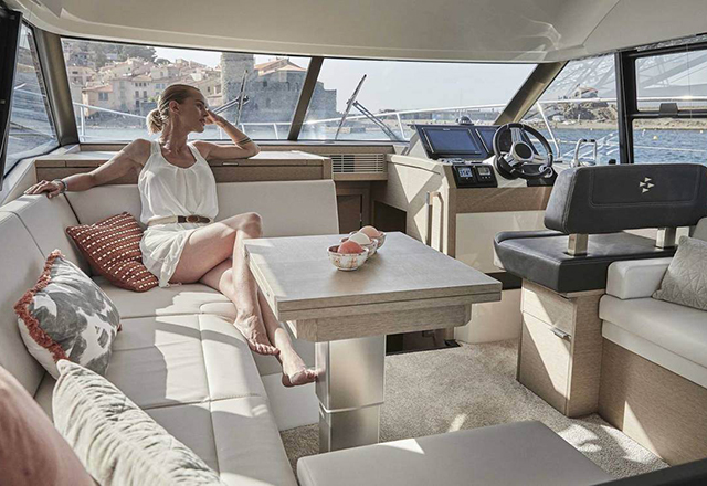Prestige 420 Fly ima jednu od najvećih flybridge paluba u klasi. Flybridgeu se pristupa sa krmene palube.